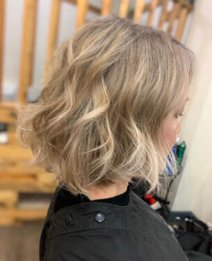 Yes. This technique works beautifully on curly and wavy hair. The angled cutting technique defines natural curls and reduces frizz, leaving the hair light and bouncy.